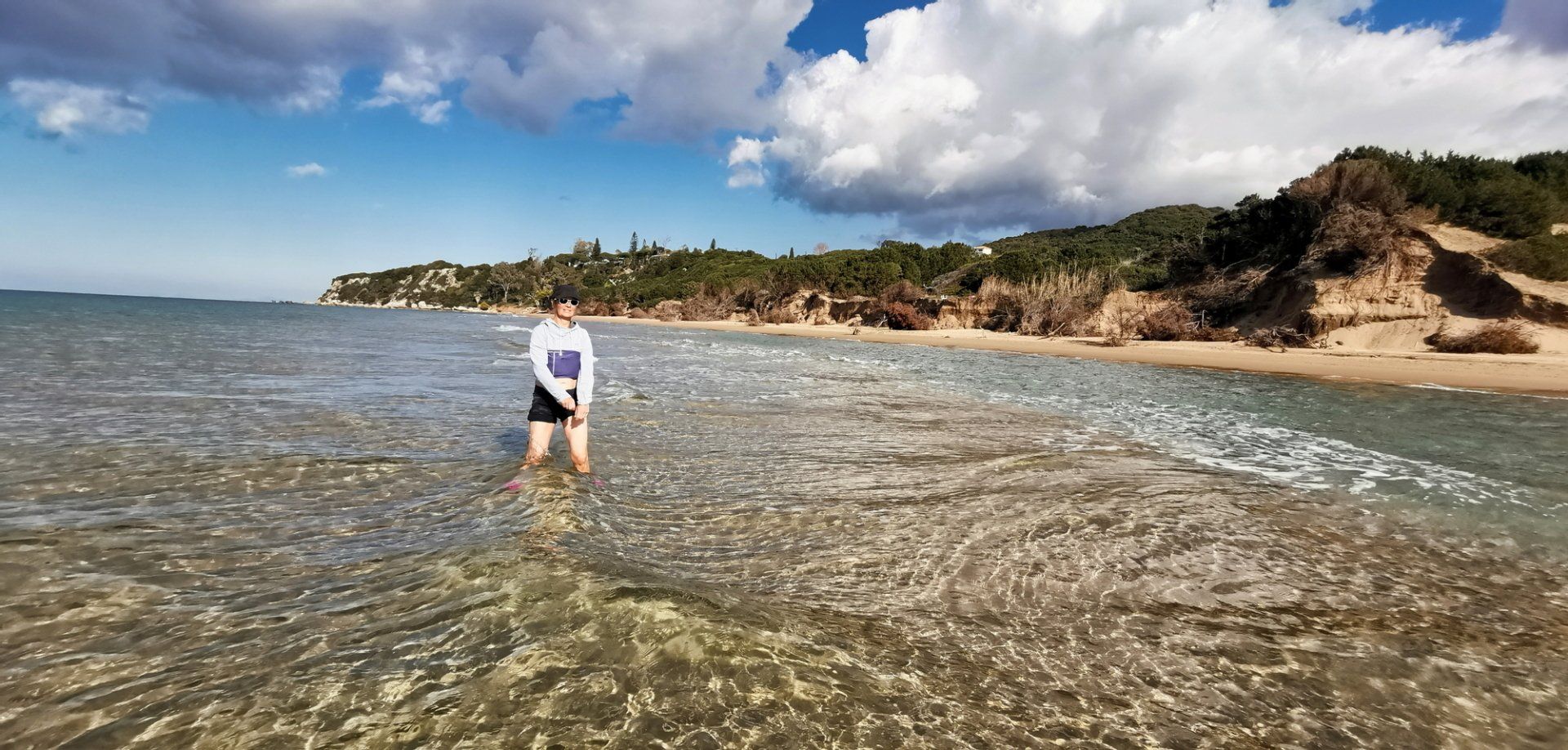 Aber es wurde Zeit, um uns nochmal etwas sportlicher zu betätigen. In Kalogria sollte es eine tolle Wanderung geben und auch das Naturschutzgebiet sollte sehr schön sein. Unser Stellplatz war auf einem großen Parkplatz, den wir aber für uns alleine hatten. Wieder einmal versuchten wir die scheuen Tiere auszutricksen, ohne Erfolg. Dafür hat sich Christina bereit erklärt für ein paar Fotos still zu halten - das ist auf jeden Fall viel einfacher als wilde Tiere zu fotografieren. Auch unsere Wanderung war toll, wenn der Rückweg nicht so katastrophal gewesen wäre.