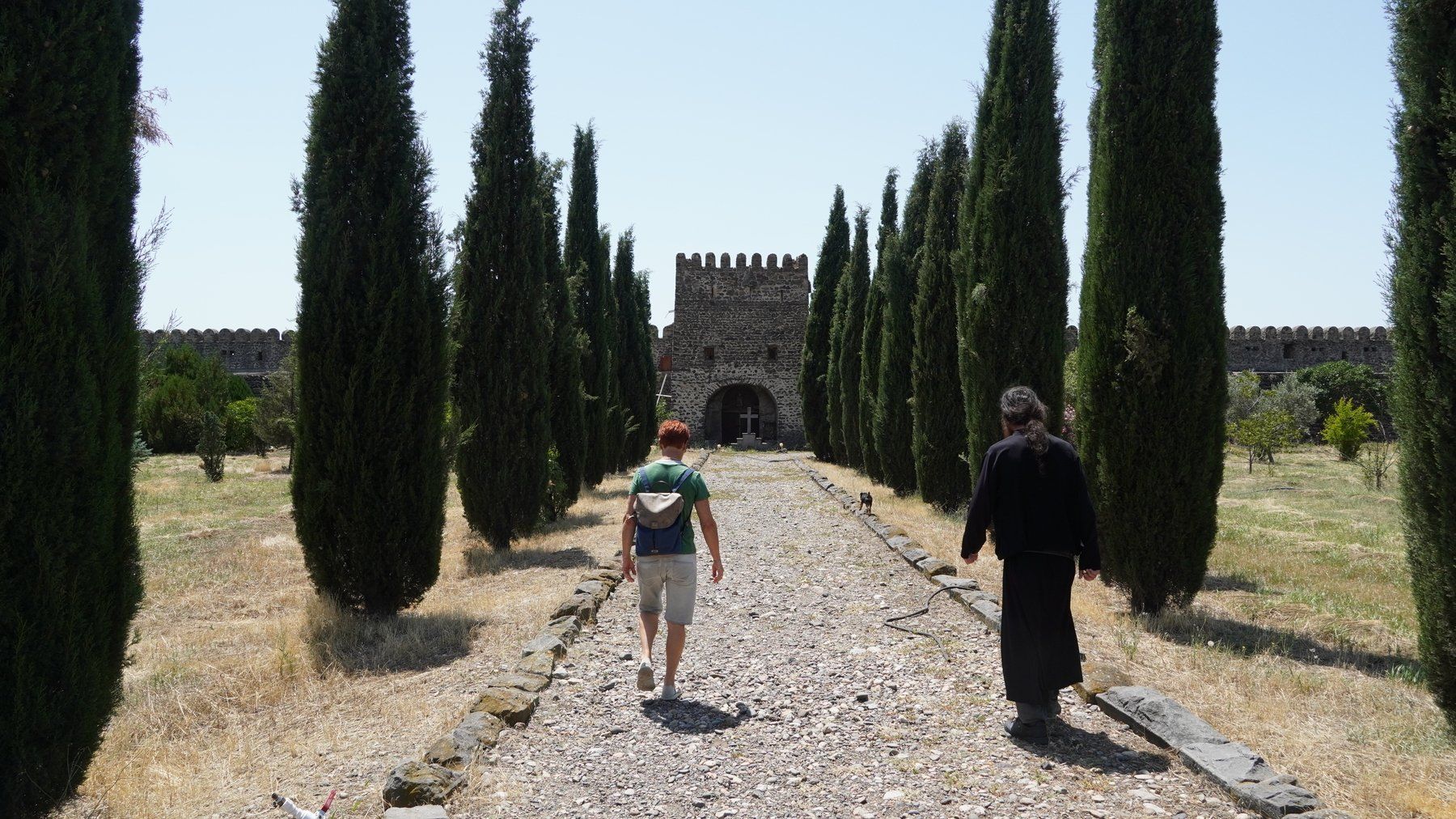 Danach ging es kurz vor Tiflis noch auf einen Pass mit einer Gedenkstätte. Diese war sehr schön aufgebaut und lag in einer tollen Landschaft. Danach besuchten wir Tiflis und ließen es uns nicht nehmen dort unsere Haarpracht wieder auf Vordermann bringen zu lassen. Nach Tiflis haben wir ein Kloster besichtigt und waren auch schon auf dem Weg zu Heike und Harry, unsere Wegbegleiter für die nächsten Tage und Wochen.