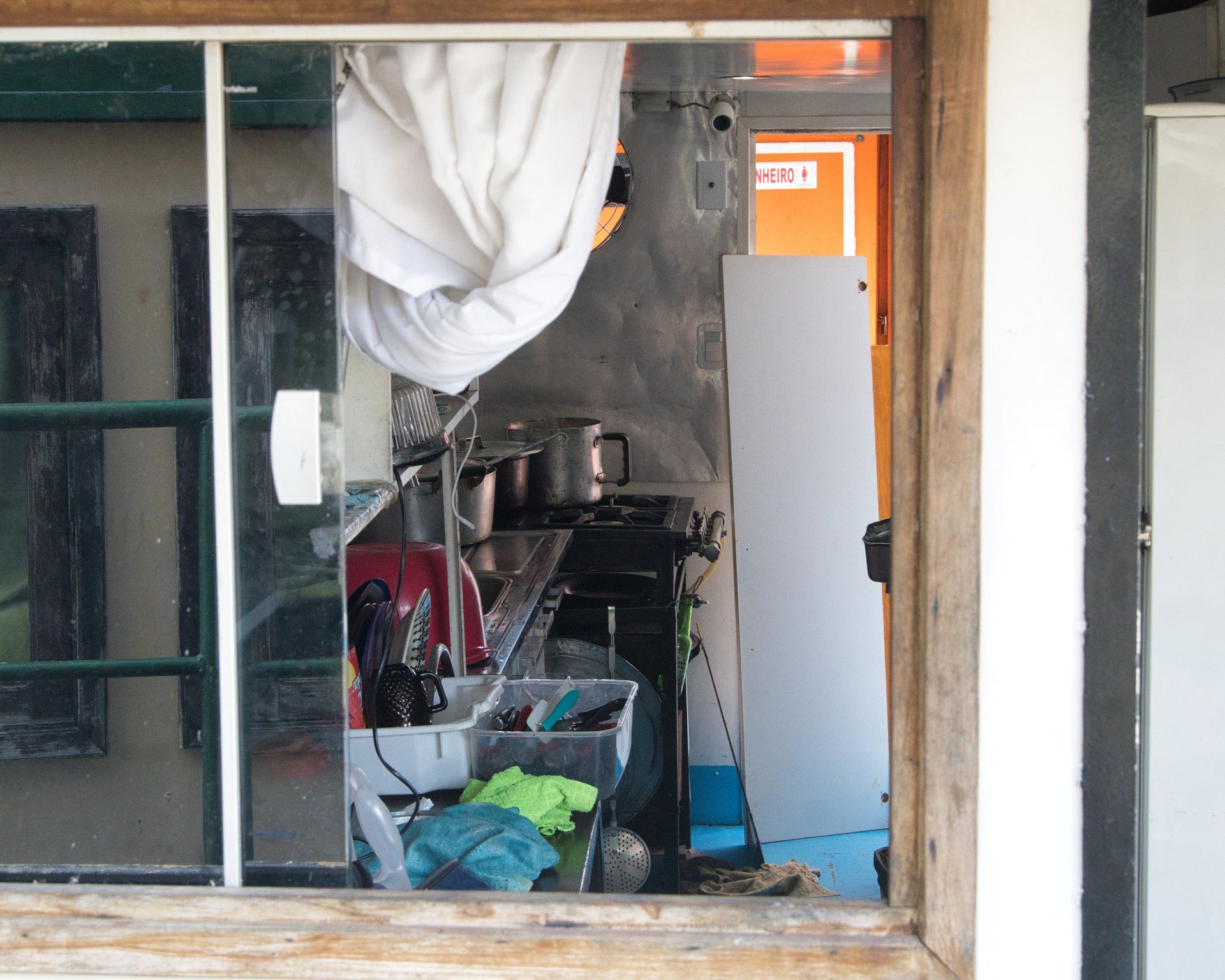 Alles ist sehr rudimentär, geschlafen wird in einfachsten Kabinen oder draußen in Hängematten. Ein toller Koch zaubert in seiner 1,5 m² Küche jeden Tag was leckeres (aber immer Reis und Bohnen). Es gibt eine kombinierte Dusche/Toilette für die Männer und eine für die Frauen.