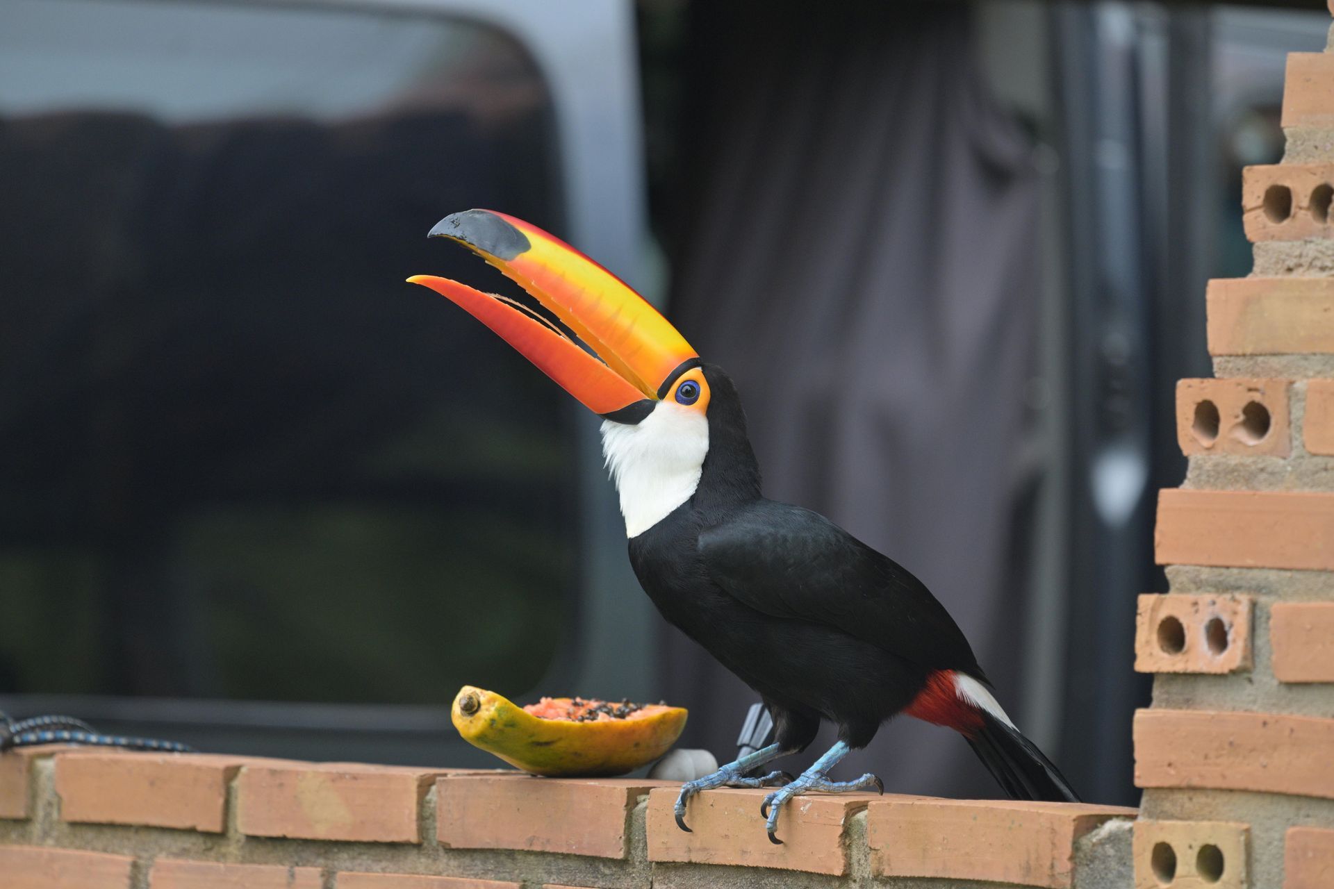 In Bonito kann man in den klaren Flüssen zusammen mit jeder Menge Fischen schwimmen gehen, aber bei kaum 10 Grad war es uns einfach viel zu kalt. Abwechslung wurde uns aber geboten durch einen super neugierigen Tukan der wirklich alles kontrollieren musste.