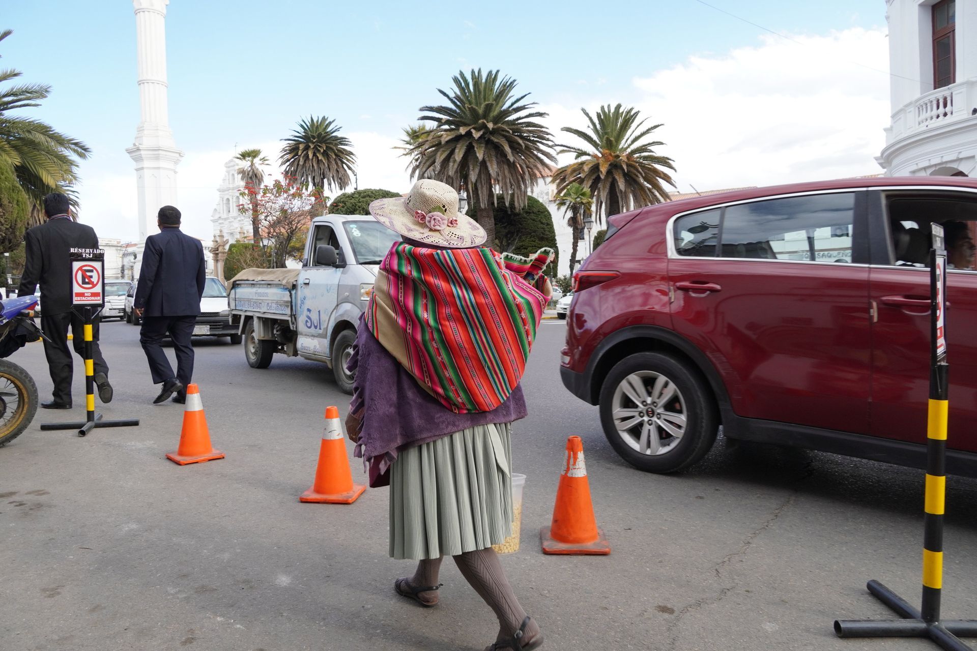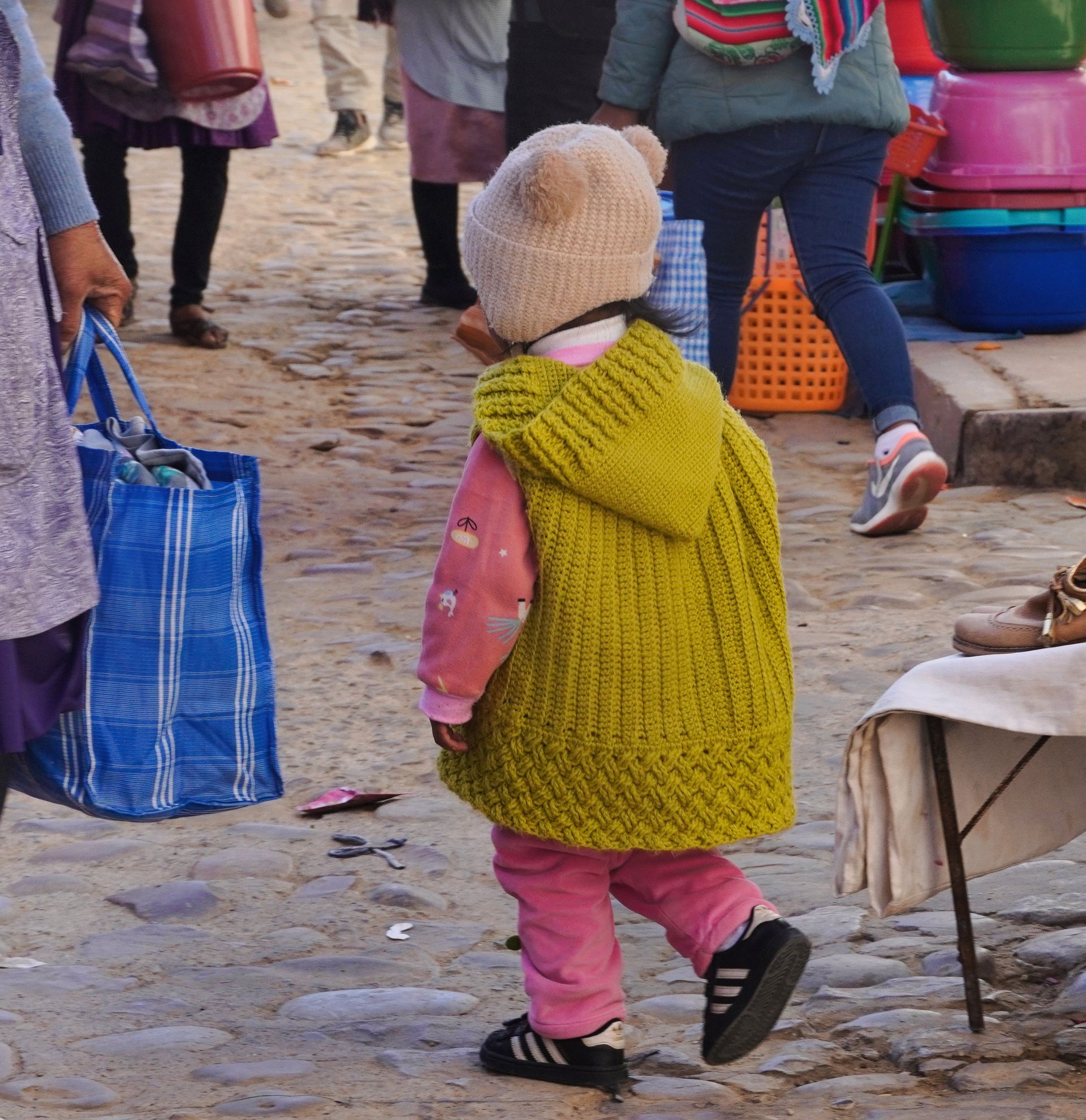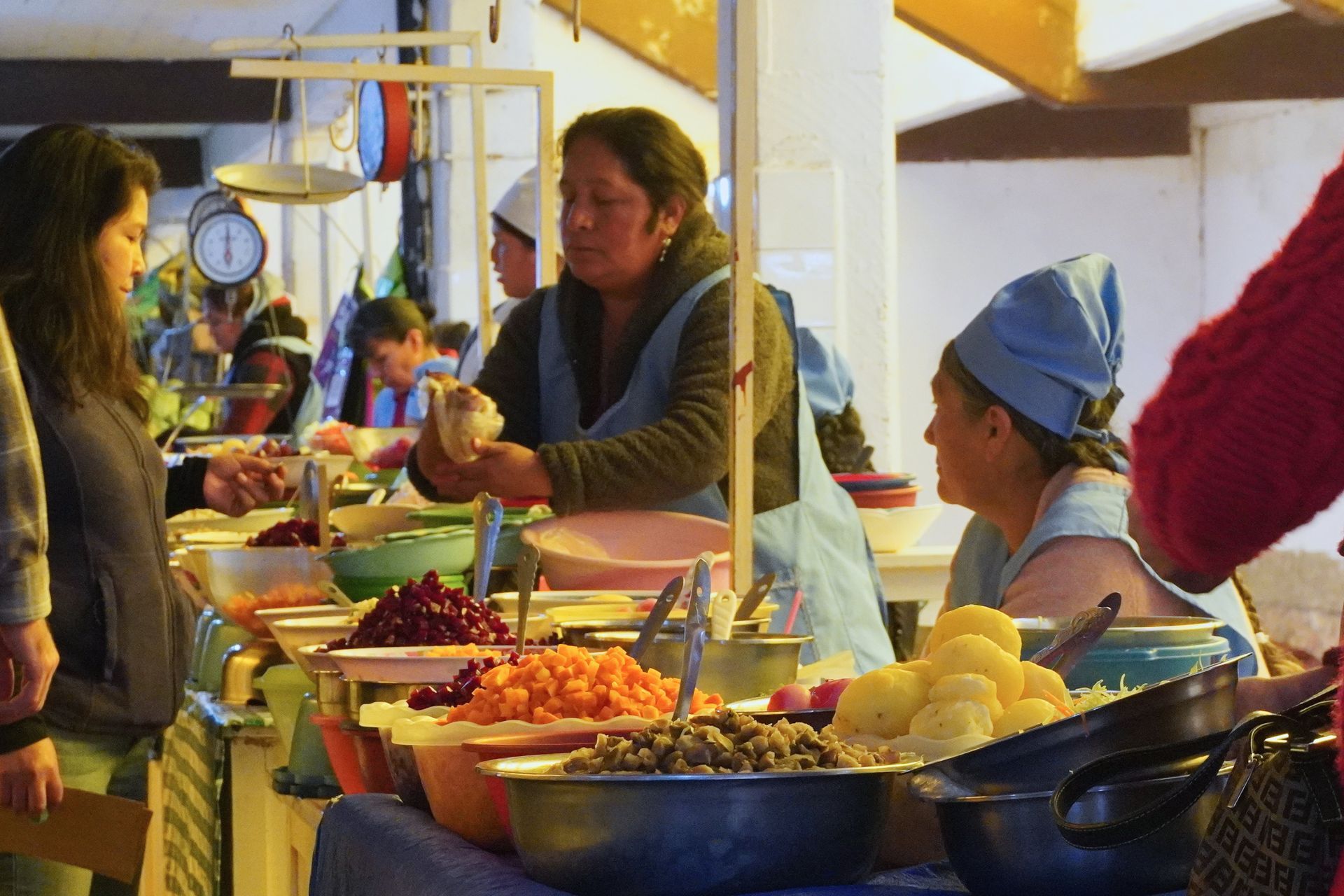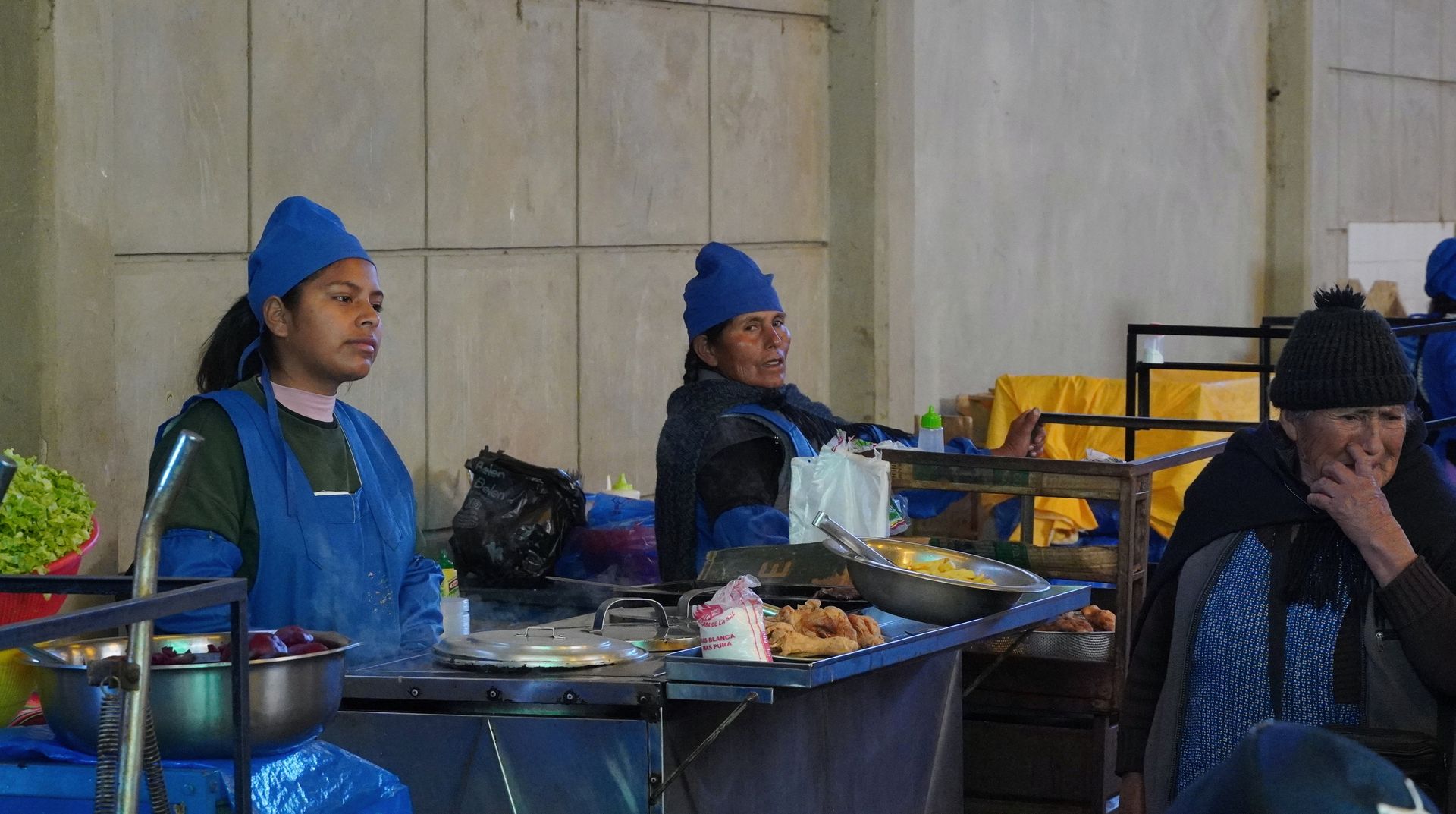Kurz vor Sucre liegt ein verschlafener Ort namens Tarabuco und hier findet jeden Sonntag ein Bauernmarkt für die einheimische Bevölkerung statt. Keine Touristen, dafür viele Bolivianer aus den naheliegenden Dörfern. Für uns super spannend, wobei die Frühstückshalle uns überhaupt nicht angesprochen hat. Schon morgens Suppe mit Hühnerfüßen ist nicht unser Ding.