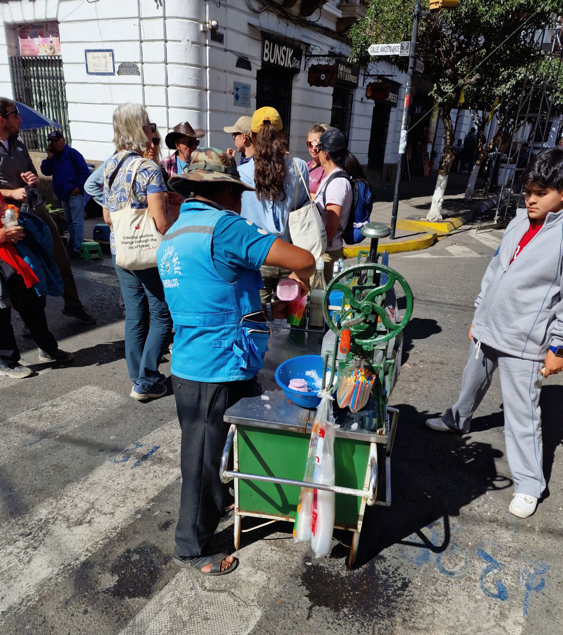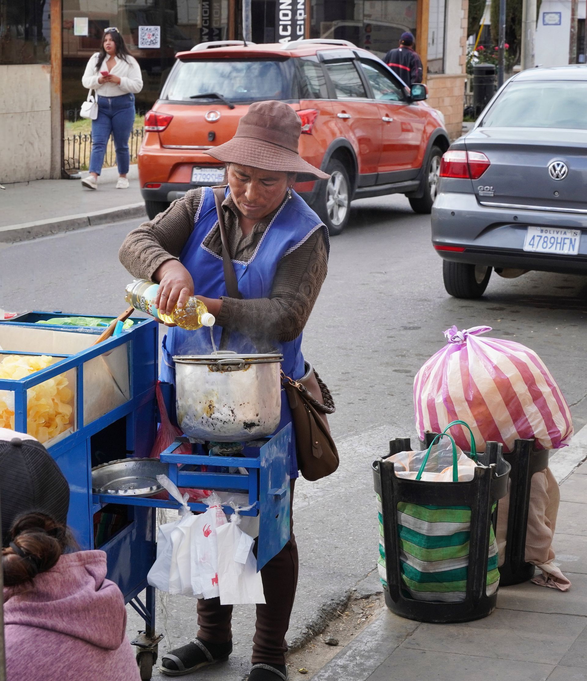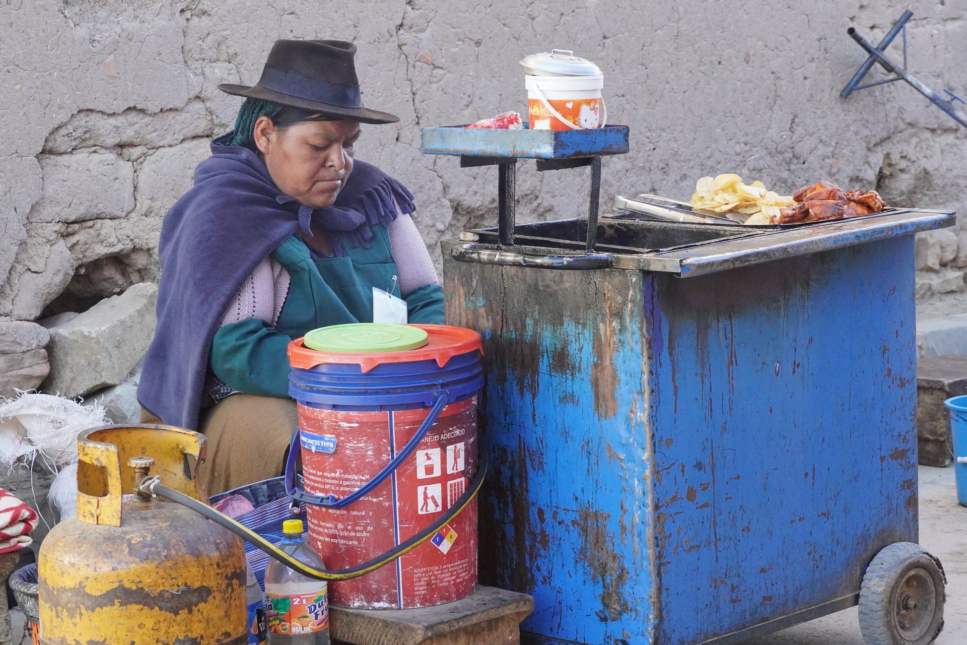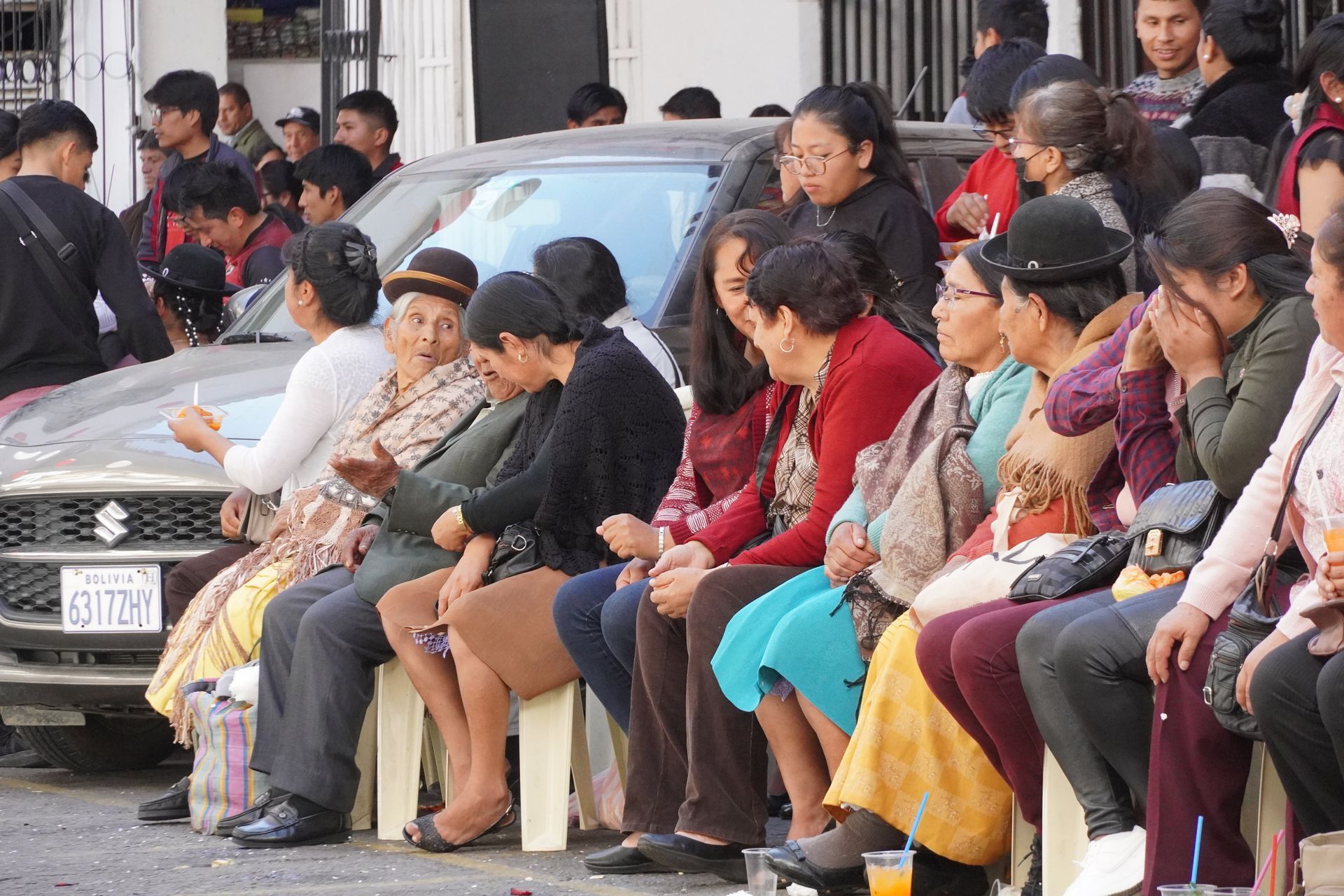 Kurz vor Sucre liegt ein verschlafener Ort namens Tarabuco und hier findet jeden Sonntag ein Bauernmarkt für die einheimische Bevölkerung statt. Keine Touristen, dafür viele Bolivianer aus den naheliegenden Dörfern. Für uns super spannend, wobei die Frühstückshalle uns überhaupt nicht angesprochen hat. Schon morgens Suppe mit Hühnerfüßen ist nicht unser Ding.