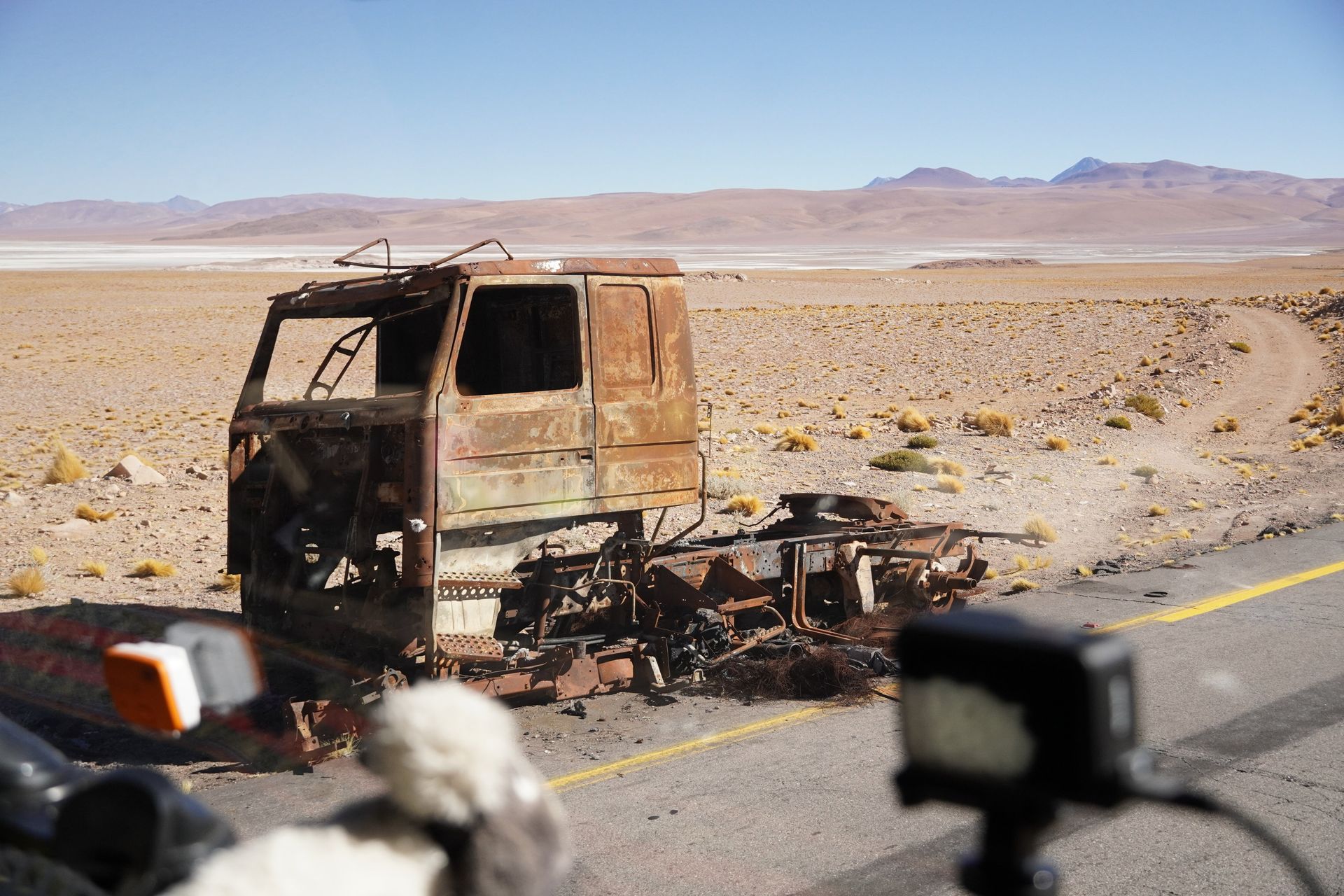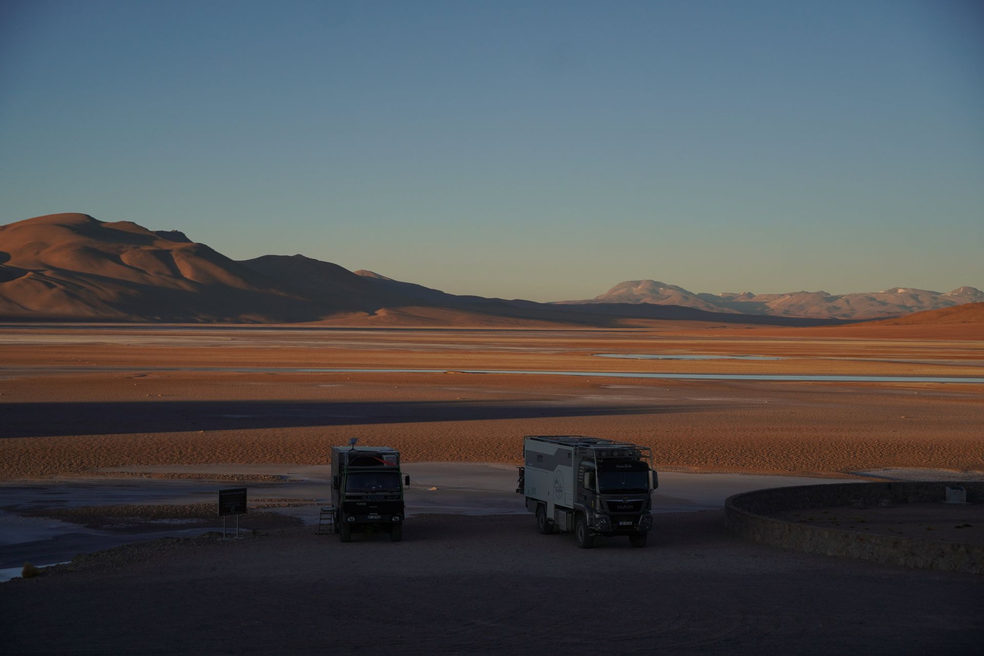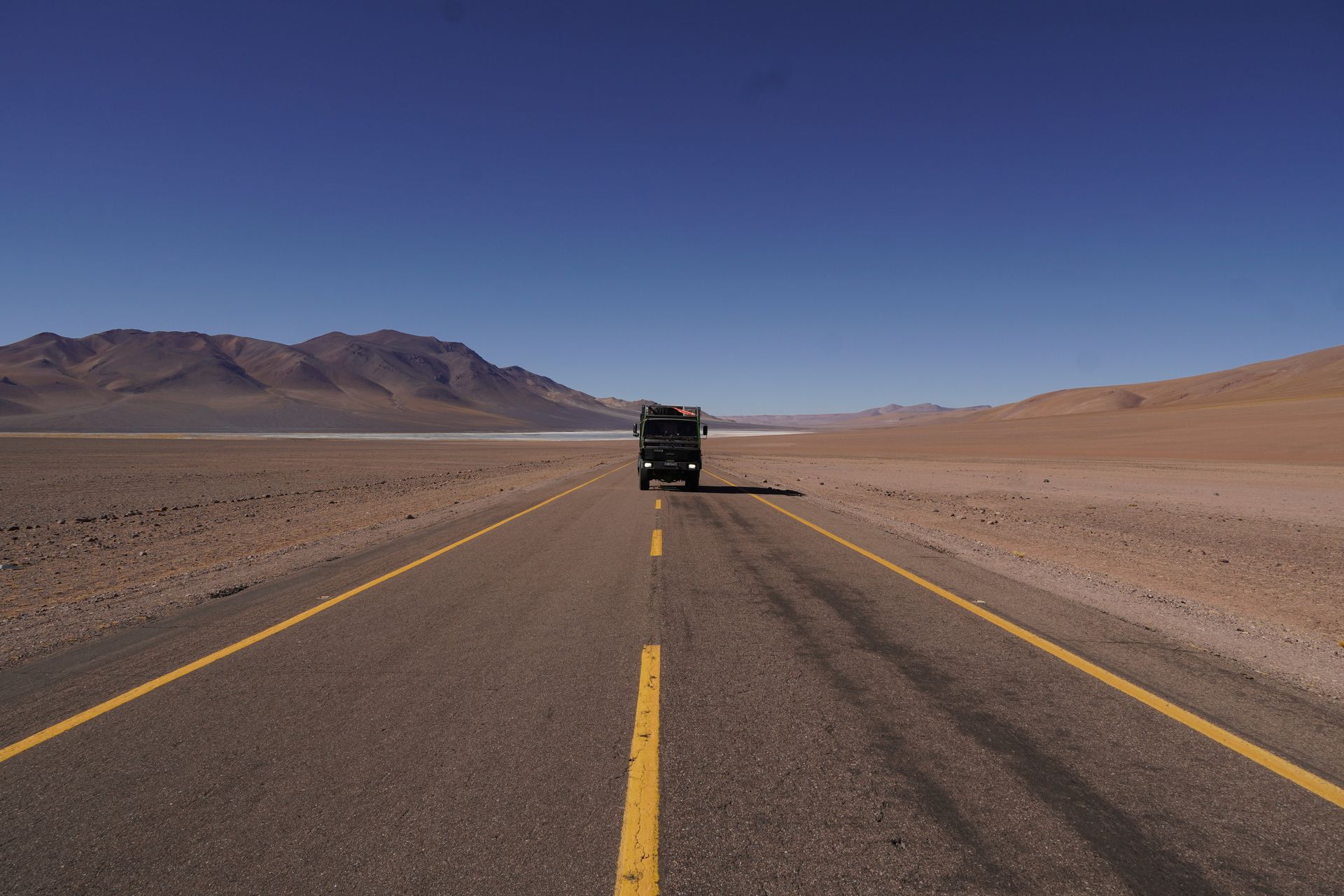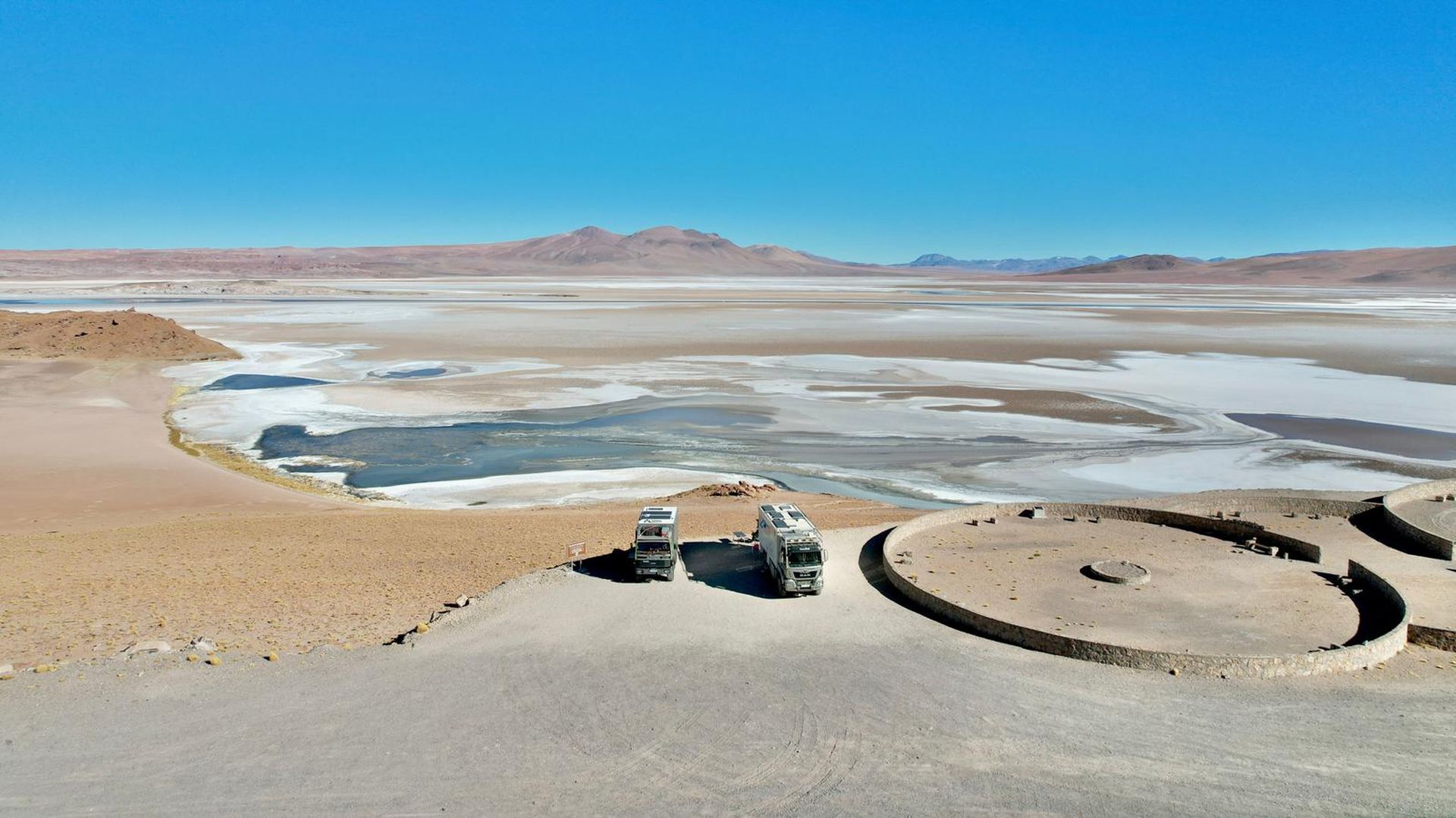 Aber vorher treffen wir noch Dave, Francine, Anja und Jan in Susques. Hier spielen die Kids auf dem staubigsten Fußballplatz den ich je gesehen habe. Es geht immer weiter und höher und die Landschaft ist extrem karg. Hier im Bermuda-Dreieck Chile/Argentinien/Bolivien gibt es überall Lithium Abbaugebiete. Tolle Farben, aber für die Umwelt sehr schädlich. Obwohl Argentinien behauptet hier das modernste und sauberste Werk der Welt zu haben. Und die Abfahrt nach San Pedro de Atacama (über 2.000 Tiefenmeter am Stück) übersteht nicht jeder.