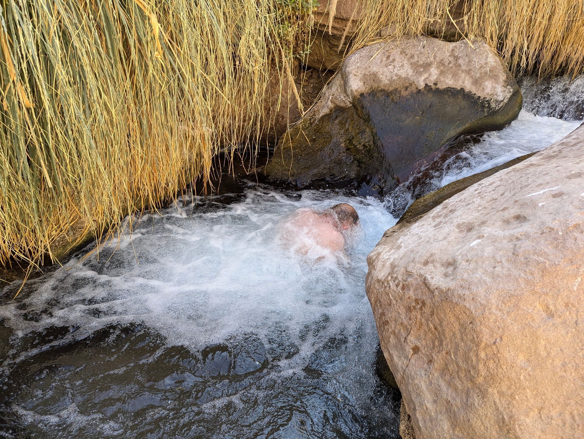 Man kann hier gut essen gehen, wir stehen am Sportplatz und auch die Umgebung hat viel zu bieten. Hier bekommen wir zu "Europäischen Preisen" ein super Frühstück und super leckere Baguette. Im Süden fahren wir auf einen CP um Wasser auf zu füllen (aus 20l Flaschen) und im Norden kommt aus dem Gebirge ein lauwarmer Bach geflossen.