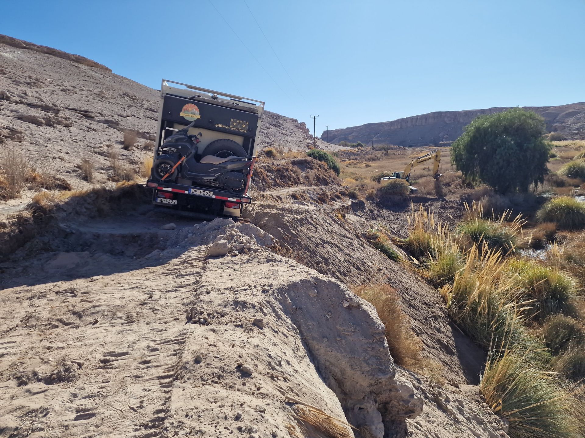 da kam die Schreckensmeldung von Anja und jan - ihr Auto droht abzustürzen... Also brechen wir unsere Zelte in SPdA ab und düsen zu den Beiden. Was für ein gruseliges Bild - es ist echt kurz vor knapp, aber am Ende hat der Campingplatz eine neue Straße und das Auto ist gerettet.