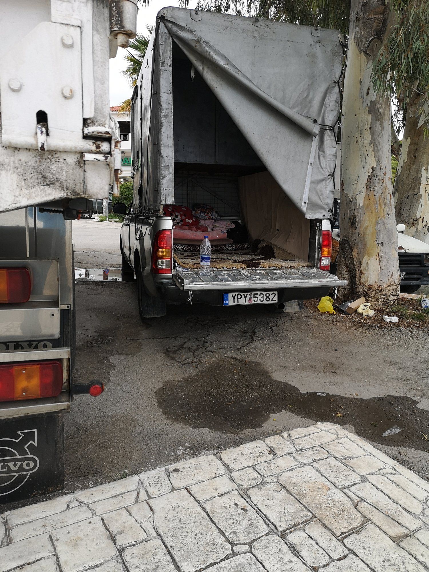Die Besitzerin hatte neben ihr noch zwei kleinere Rabauken und ein 14 Monate alles Kind. Alles liebevoll untergebracht in einem Kastenwagen.